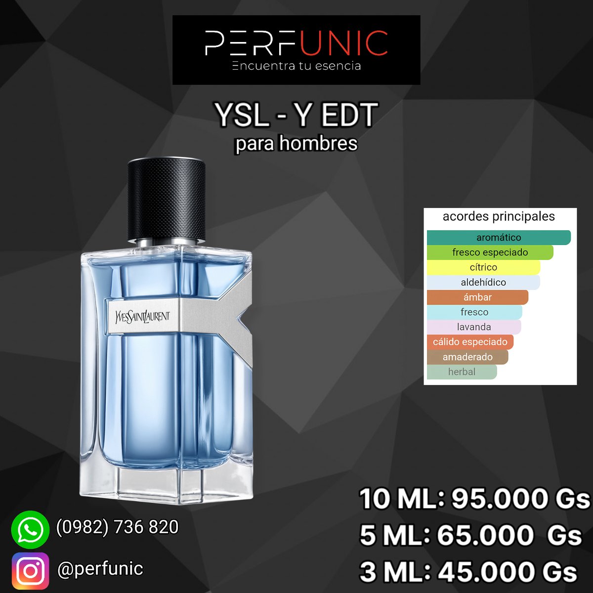 Y EDT es una fragancia fresca, limpia y vibrante al principio, con un corazón especiado y herbal, y un fondo ligeramente amaderado y sensual. Es ideal para el día, especialmente en climas cálidos o durante primavera y verano.